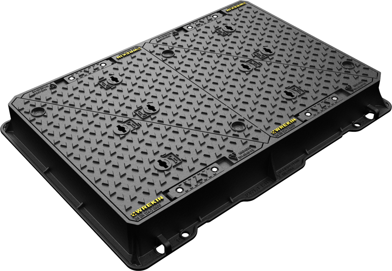 DMT0E6/1268/KP4Pulse E600 manhole cover 1,220mm x 680mm clear opening with 150mm frame depth - 4 padlock points (padlocks not included).