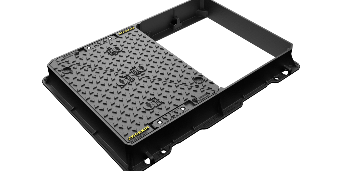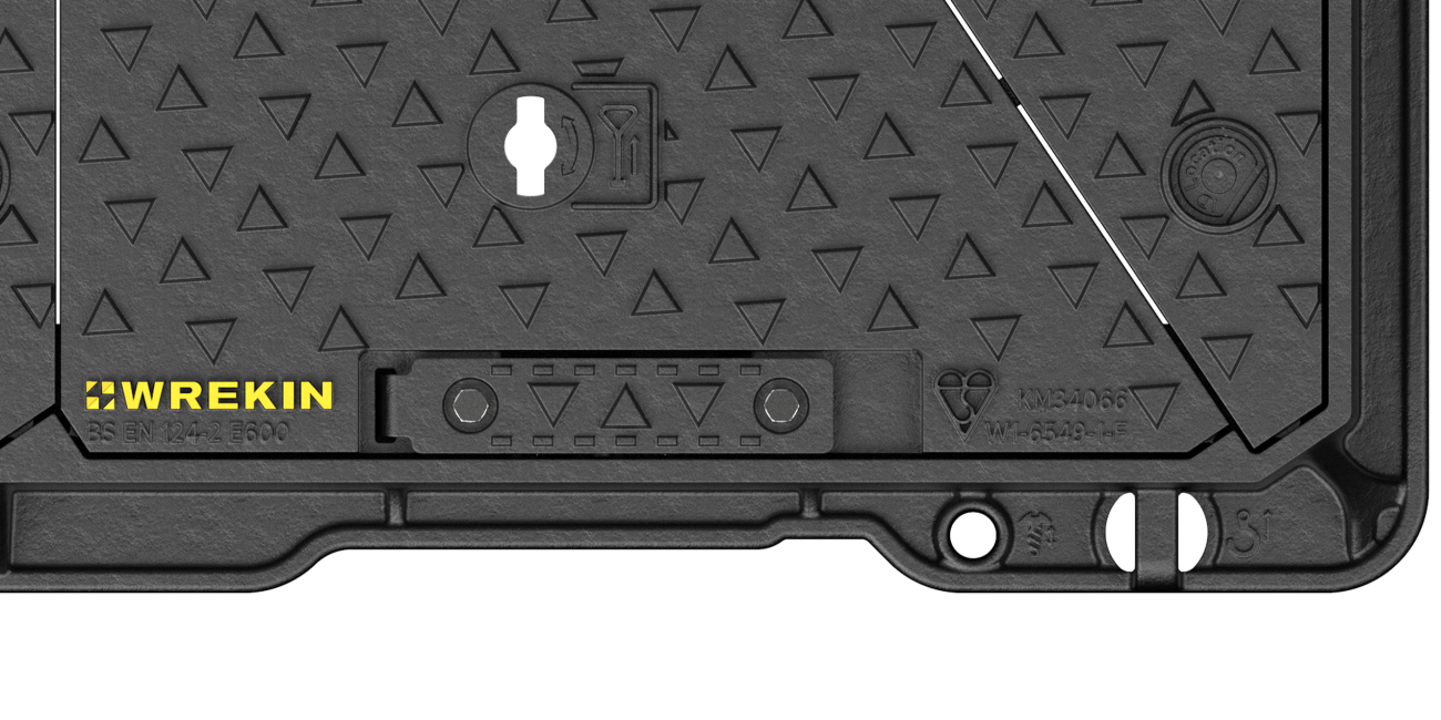 DMT0E6/1268/KP4Pulse E600 manhole cover 1,220mm x 680mm clear opening with 150mm frame depth - 4 padlock points (padlocks not included) - Carriageway 2